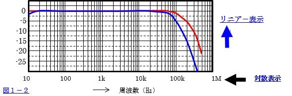 な周波数特性から-3dB低下した処の周波数を以て、設計上の物理量として評価します。