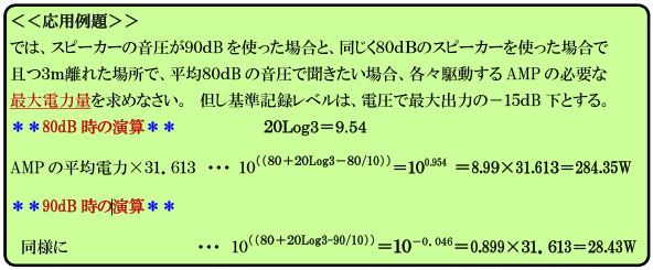この時のピーク音圧は、90dBのスピーカーと300W-AMPを使ったと仮定すれば、4-1式を使って平均聴取音圧が90dBなら、約105dBと演算出来ます。