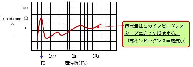 高域で低下する。(当然の物理現象です) 以上より、インピーダンスが高くなっても電流量は変わらず