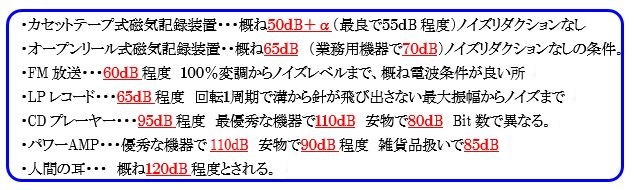 カセット式テープレコーダーに至っては、そもそも―60dBの信号は表現不可能です。