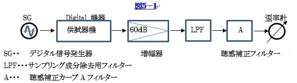 図5-1の60dB増幅器を除いて、Audio機器の出力端にLPFと聴感補正フィルターのAカーブを挿入し