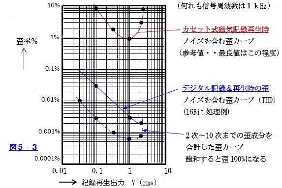 図5-3の記録再生時の歪と、ダイナミックレンジ測定時の歪は、関係が無いのでご注意下さい。
