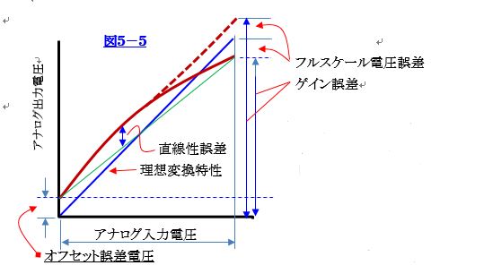 A/D(Analog to Digital) to D/Aコンバータ―の変換誤差について表したのを図5-5に示します。