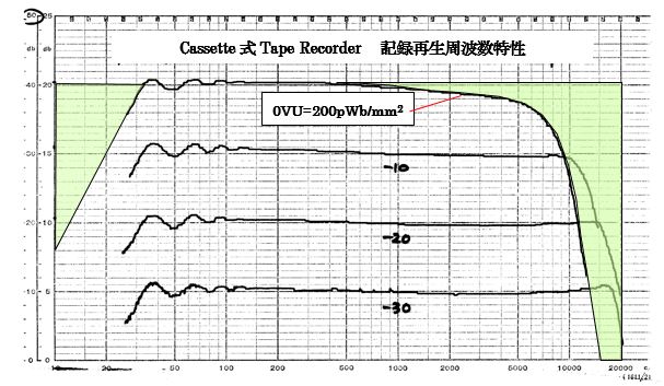 つまり記録レベルが上がる程、高い周波数領域では減衰が激しく、記録レベルが下がるに比例して高域