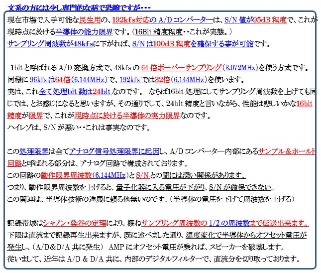 ハイレゾ+真の24bit化は、気絶する程技術ハードルが高いのですが、今後の発展に期待しましょう。
