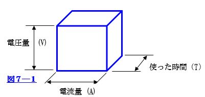 このように電圧×電流×時間=電力量になります。(立方体の体積に相当)