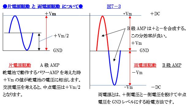 B級AMP方式はA級AMPのパワー不足を改善する目的で考案されました。