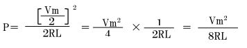 GNDと電源電圧Vmの間をフルスイングしますので、電力=+Vm2/2RL となります。