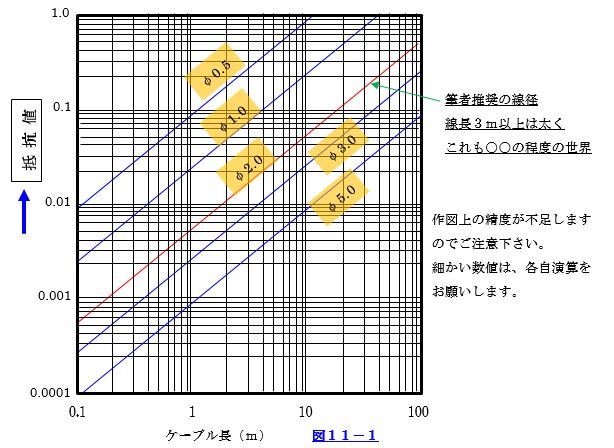 これを理解された方は、ケーブル長と芯線構成による抵抗値が、自由に演算出来る様になります。