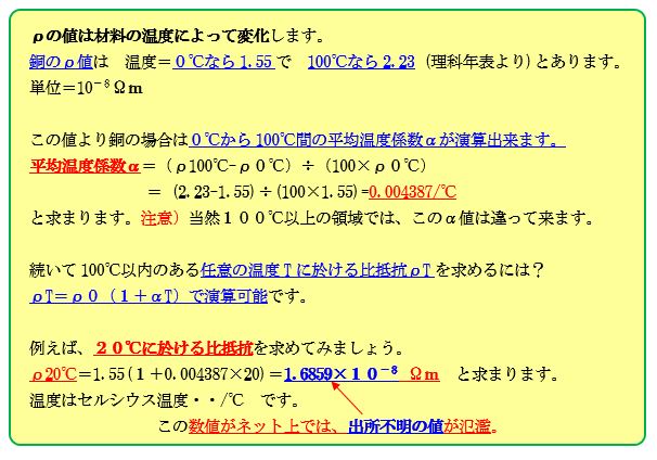 つまり銅固有の、素材に起因する抵抗値です。 これを解説するには、またまた数値で説明しないと物理的に解説不可能となります。
