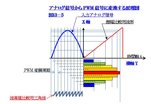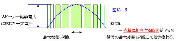 (PWMの波高値を電力駆動段で変調率に変換する工夫が必要)