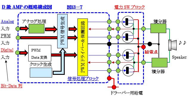 実現します。 従って、D/AコンバーターとD級AMPの間は、PWM伝送形式で結合します。