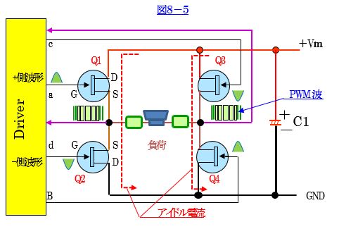 され、低い周波数はインダクタンスを経由して、電力SW用半導体でシャントされる構成です。